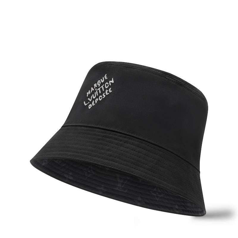 ルイ・ヴィトンのサヴォアフェール(匠の技)を表現する「バケットハット・モノグラム ブラスト」。雨の日を洗練されたひとときへと演出するアイテム。撥水加工を施し、ストーングレーの色合いで仕上げている。片面にはスクリーンプリントの技法でモノグラム・モチーフを、もう片面には「Marque L. Vuitton Déposée」シグネチャーをホワイトの刺繍であしらった、多彩なスタイルを叶えるリバーシブル仕様のデザイン。