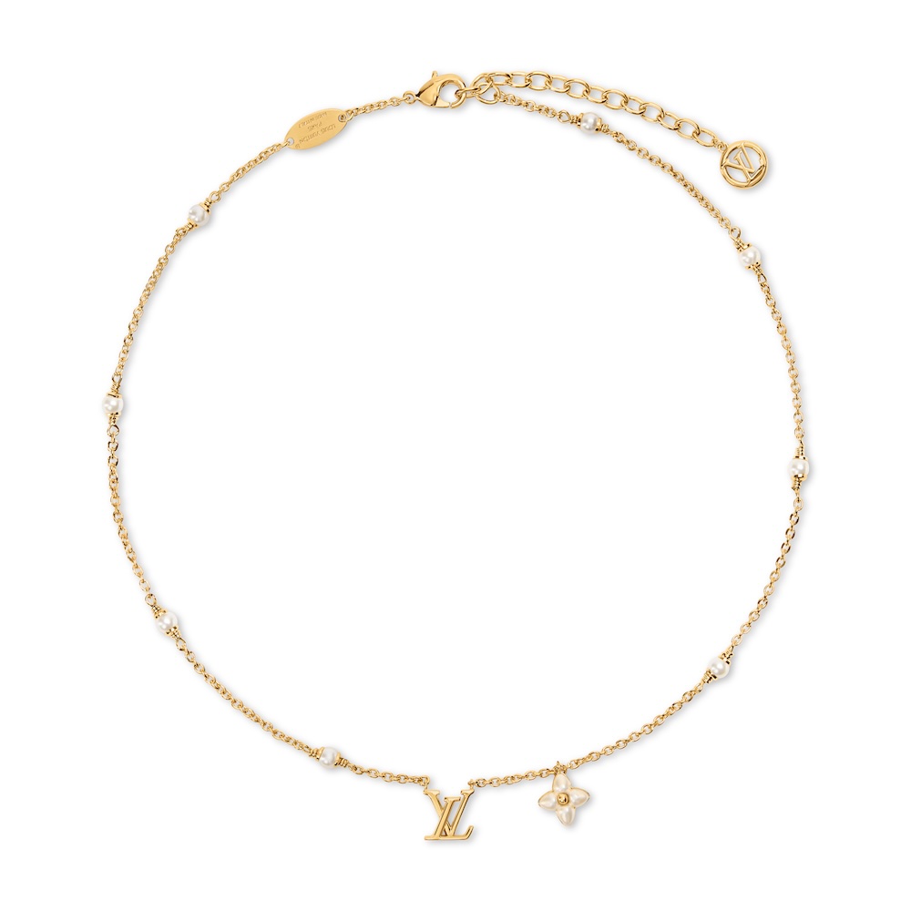 メゾンを象徴するアイコンとタイムレスなパールの美しさから着想を得た、印象的なエレガンスをまとう「ネックレス・LV フローラグラム XS」。繊細なゴールドカラーのチェーンに、LV ロゴとモノグラム・フラワーのペンダント、光沢感のある8粒のホワイトレジンパールなど、精緻なディテールがあしらわれている。合わせやすくフェミニンなデザインで、デイリーからフォーマルなシーンまで幅広く活躍する。