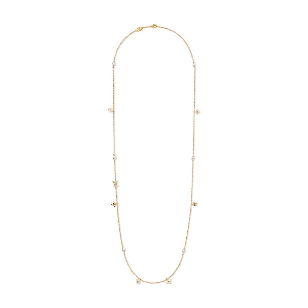 メゾンを象徴するモノグラム・シグネチャーに、パールが持つ美しさと象徴性を融合した「ペンダント・LV フローラグラム XS」。ゴールドカラーのメタルで仕上げた繊細なロングチェーンに、パールのような光沢感を放つレジンで彩られたモノグラム・フラワーやLV ロゴのチャーム、輝くレジンパールをあしらっている。あらゆる装いに洗練されたフェミニンなアクセントを添える、控えめながらも存在感を放つアイテム。